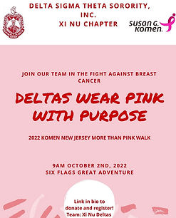 In recognition of October being Breast Cancer Awareness Month, the Xi Nu Chapter of Delta Sigma Theta Sorority, Inc. committed to raising awareness and funds for the Susan G. Komen Foundation for breast cancer research in efforts of finding the cure.